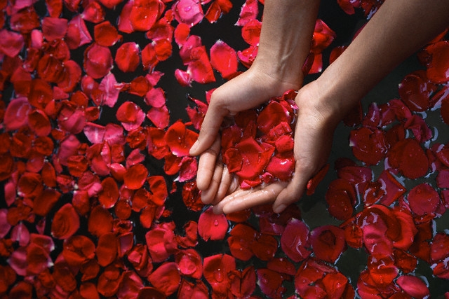 Украшение лепестками роз